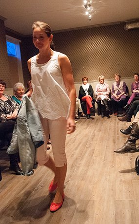 Towa har här omlottscardigan och cargobyxor kombinerat med en mönstrad tunika med brottarringning.
