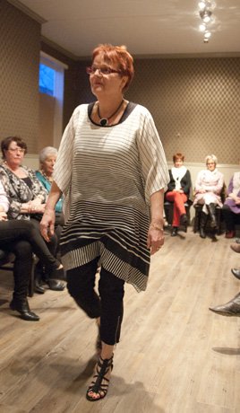 Så kommer Maria i capribyxor och topp med broderier.