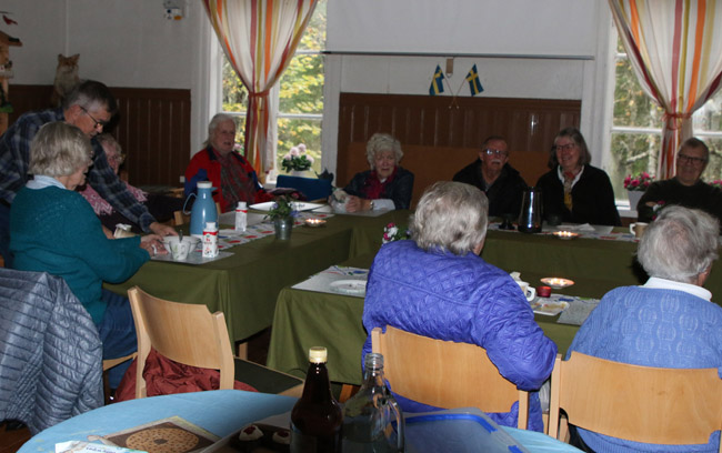 Ett 20 tal medlemmar hade bänkat sig i den sedan något år ommöblerade stugan. Alla satt vända mot varandra och det blev lättare att prata med alla.