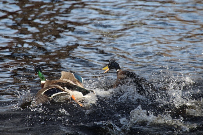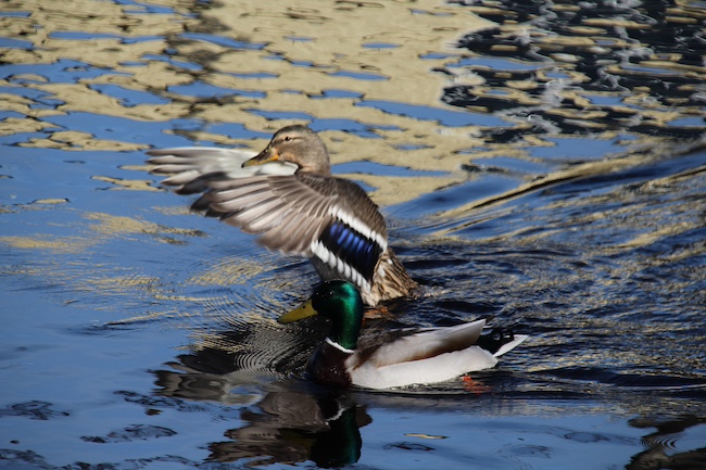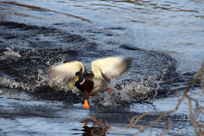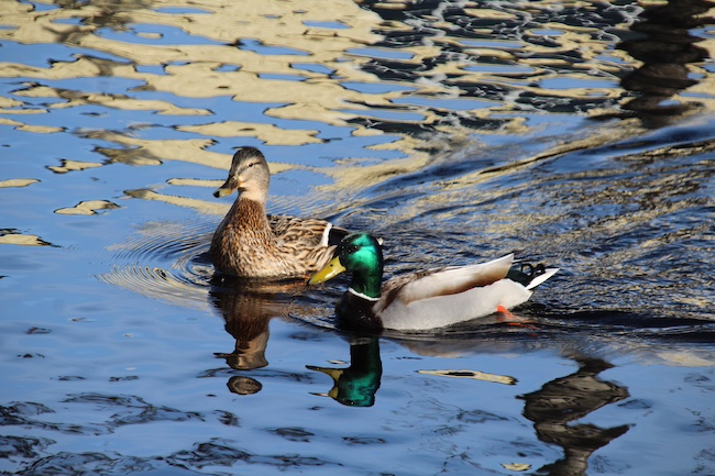 På grund av att vi människor började mata änder i parker och i dammar, så håller de sig kvar i Sverige hela vintern. Det kan dock vara svårt för dem när vattendrag fryser till is om vintern. Men nu har isarna smält och änderna tar med glädje sina första vårdopp!
