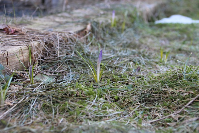 Väl hemma så hade våren tittat fram i gräsmattan! Vårens första krokus!