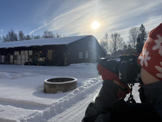 ”Idag var jag med mormor och morfar! Morfar skulle fixa grus till vägarna i Kopparberg. Jag var med i traktorn medan han körde. Då var vi på en parkering och grusade. Det var läskigt och nervöst att åka högt upp och utan bälte!