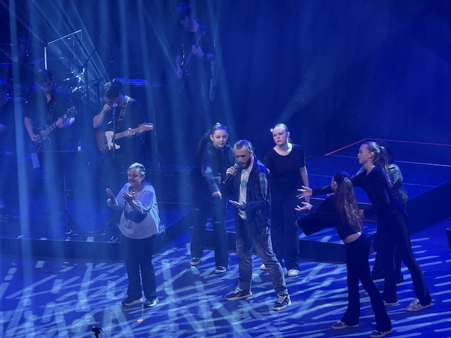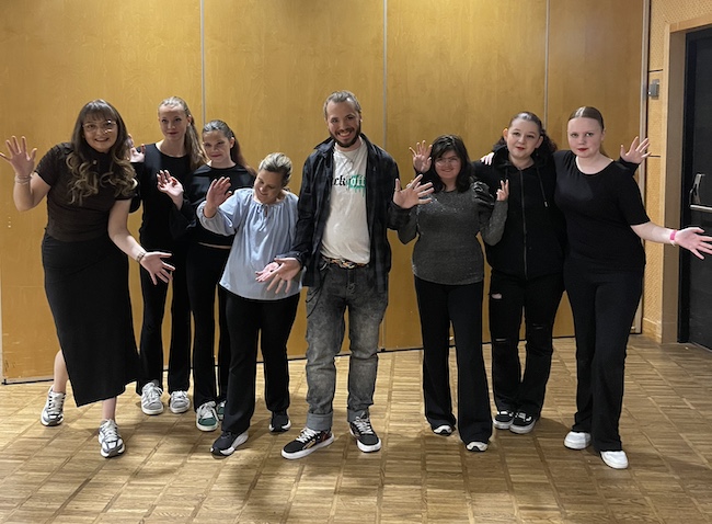 Här är hela gänget samlat bakom kulisserna på Conventum Congress; Linnea, Nova, Elvira, Annika, Thor, Sanna, Julia och Filippa. Repetition och sen en nervös och pirrig väntan inför uppträdandet inför publik.