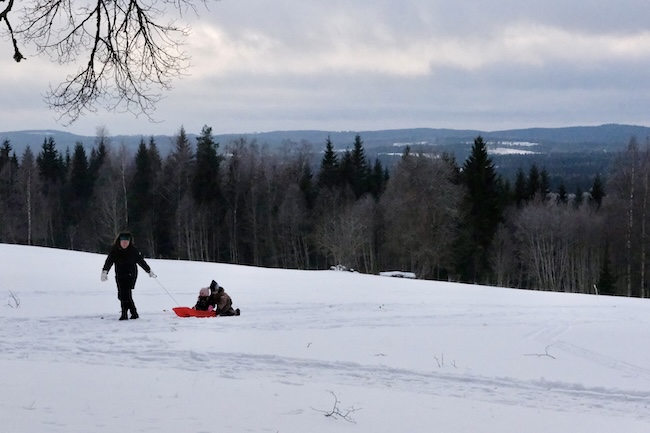 Med energin från våfflorna så gick det utmärkt att åka lite till i backen, precis som mormor Josefine och barnbarnen testade på.