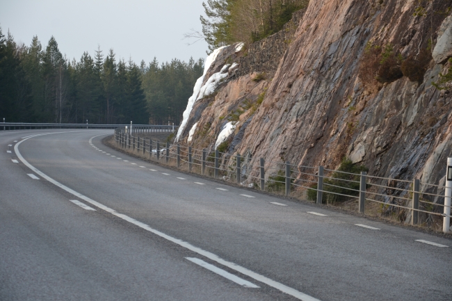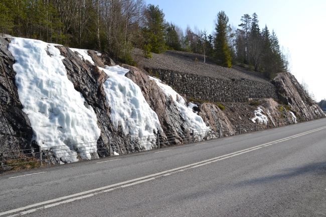 10 mars. Riksväg 50 några hundratal meter efter Björkäng mot norr finns det en isvägg.