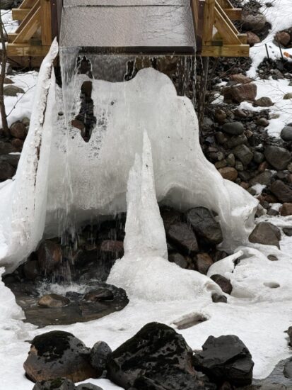 Två veckor senare och rinnande vatten med någon enstaka plusgrad sliter ut isen.