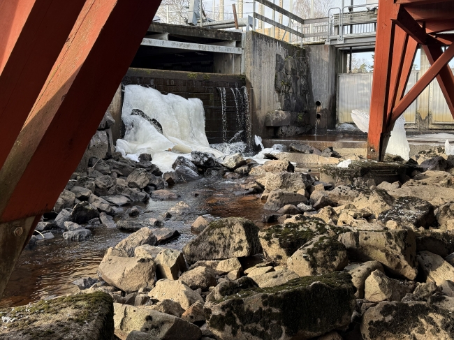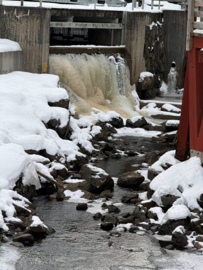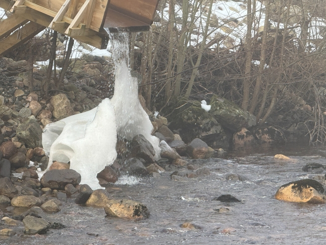 Ett hundratal meter uppströms syns en rejäl isvägg. Det är minus 10 grader den 17 februari.